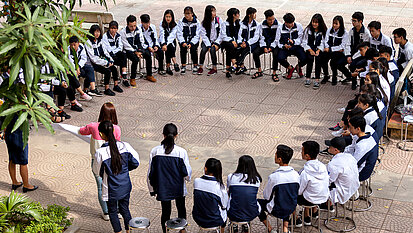 Mit der Unterstützung von geschulten Trainer:innen reflektieren Mädchen und Jungen gemeinsam traditionelle Geschlechterrollen, um schädliche Stereotype zu beenden. Denn sexuelle Belästigung und Gewalt sind häufig in der veralteten Vorstellung begründet, dass Mädchen und Frauen weniger wert sind, und dass Männer sich so benehmen „dürfen“.