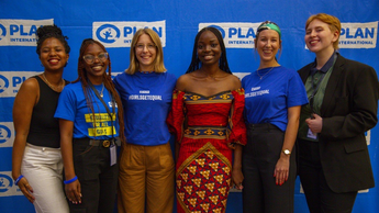 Zwischen den Events fanden wir uns auch häufig in der Plan-Booth wieder. Hier betreuten vor allem die Mitarbeitenden von dem Plan Office in Sambia einen Informationsstand direkt vor dem Konferenzgebäude. Sie gaben Flyer und Buttons an die vielen Interessierten, die, ganz der allgemeinen Energie der Konferenz folgend, sehr kommunikativ auf uns zukamen, um sich zu informieren. Es gab sogar eine Fotowand mit dem Plan Logo, vor der wir oft mit anderen Aktivist:innen verewigt wurden.