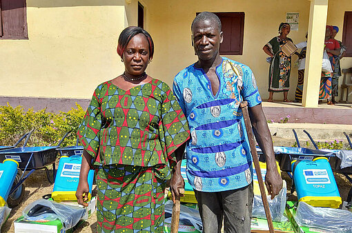 „Ich habe mich immer nur körperlich behindert gefühlt, weil mir Gliedmaßen fehlen, aber dank meiner Entschlossenheit kommen jetzt auch nichtbehinderte Menschen zu mir, um einen Kredit aufzunehmen. Mit diesem Projekt haben wir eine Gruppe von 25 Mitgliedern gebildet“, erzählt deren Vorsitzende Jeanne. „So konnten wir neue Werkzeuge und eine Dreschmaschine erwerben, die von allen Gruppenmitgliedern genutzt werden, und wir werden uns so organisieren, dass die Gemeinschaft über die Mitglieder dieser Gruppe hinaus davon profitieren kann.“