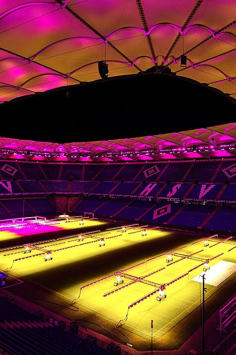 Gemeinsamer Sport fördert Teamgeist und Selbstvertrauen. Beim Mädchenfußballtag mit dem HSV hatten 50 Mädchen im Alter von sechs bis 18 Jahren die Möglichkeit, am Weltmädchentag im Hamburger Volksparkstadion zu spielen, darunter auch Mädchen aus Plan-Projekten für geflüchtete Jugendliche in Deutschland. Trainiert wurde in drei Gruppen mit Trainer:innen des HSV.