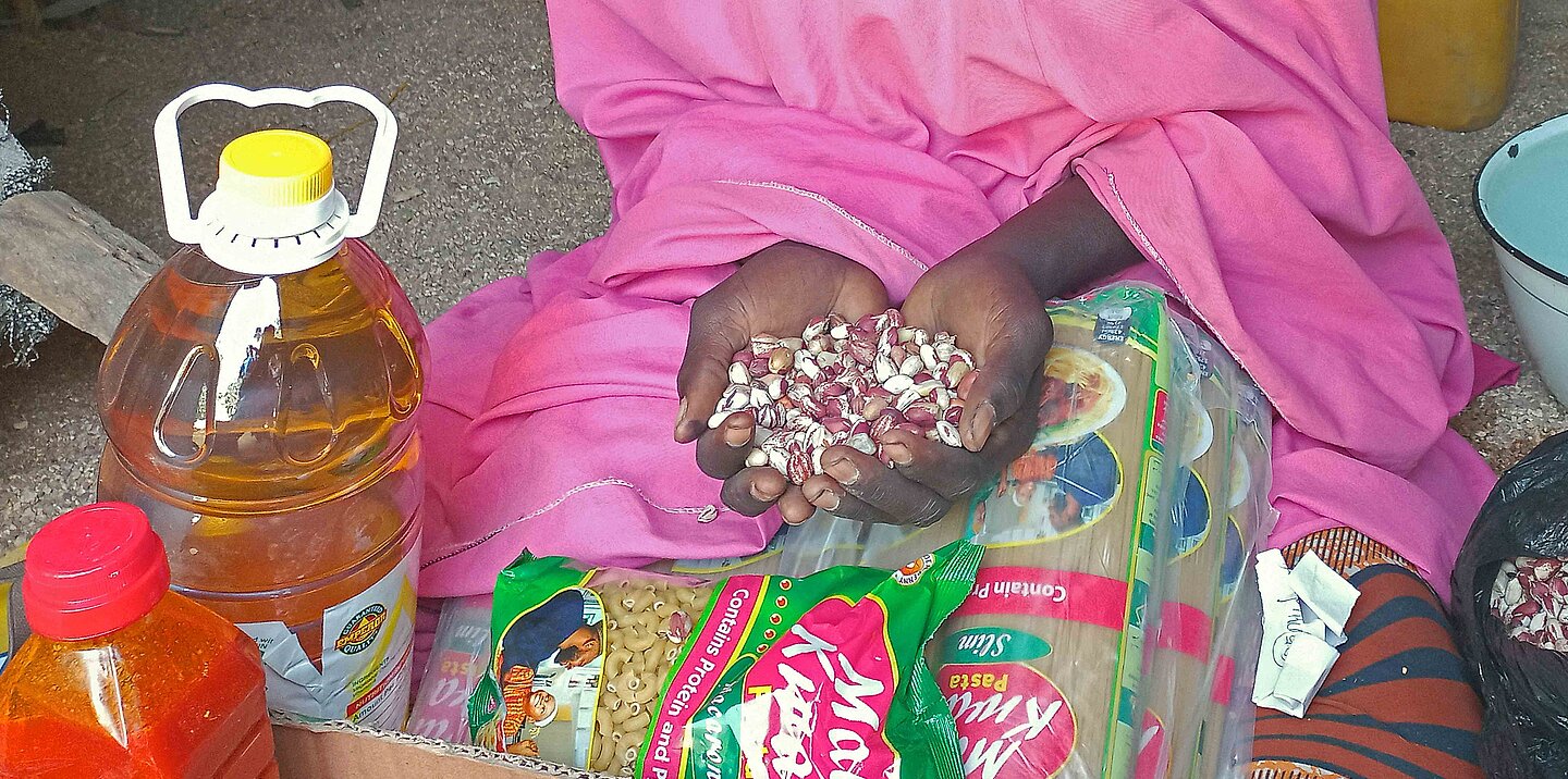 Wie Tausende andere Familien in Gwoza wurde auch Fatis Leben durch jahrelange soziale Unruhen auf den Kopf gestellt. Früher lebte ihre Familie von kleinbäuerlicher Landwirtschaft, baute Bohnen und andere Feldfrüchte an, um sich zu ernähren. Doch neben Konflikten verhindern zunehmend Wetterextreme den Ackerbau – und zerstören damit die Lebensgrundlagen der Bevölkerung. „Während der Anbauzeit gab es nicht genug Regen“, sagt Fati. „Die Bohnen konnten nicht wachsen, alles ist vertrocknet.“