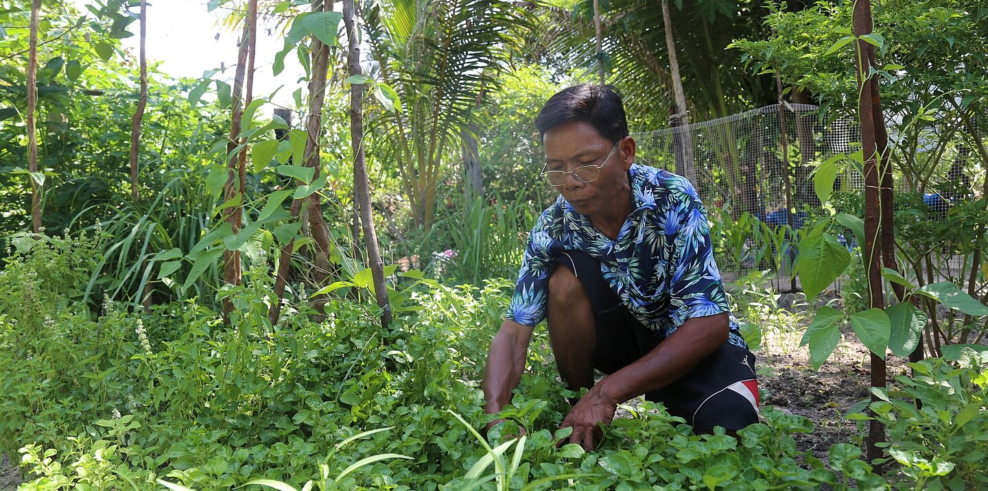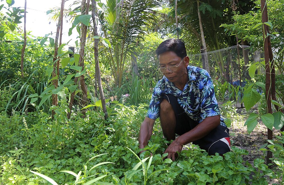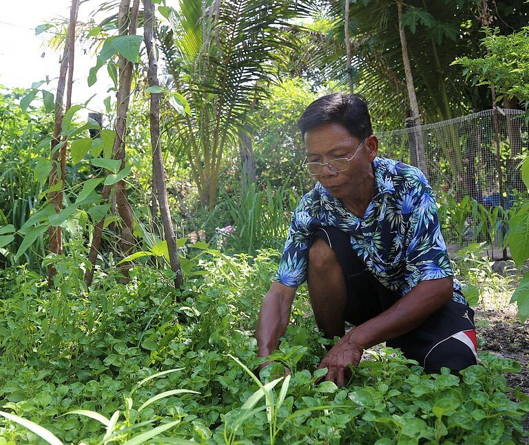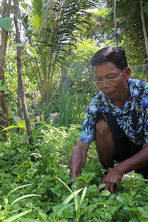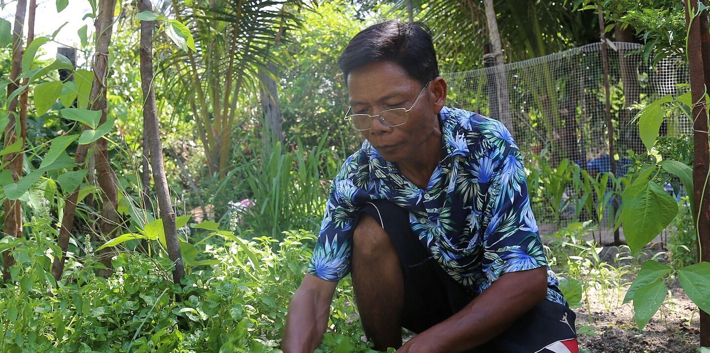 Am frühen Morgen arbeitet Phat in seinem kleinen Garten, die Hände tief in der Erde. Zwischen den schmalen Beeten stehen Spinat, Wasserspinat und Senfblätter, die er selbst gepflanzt hat. Neben ihm trocknet seine Frau Fisch in der Sonne, während Wasser aus dem nahegelegenen Teich leise plätschert, in dem er Welse züchtet. Auf den ersten Blick wirkt es wie ein gewöhnlicher Tag in einem Dorf der Provinz Siem Reap in Kambodscha. Für Phat jedoch ist jeder Handgriff ein Schritt hin zu einem besseren Alltag für seine Familie.