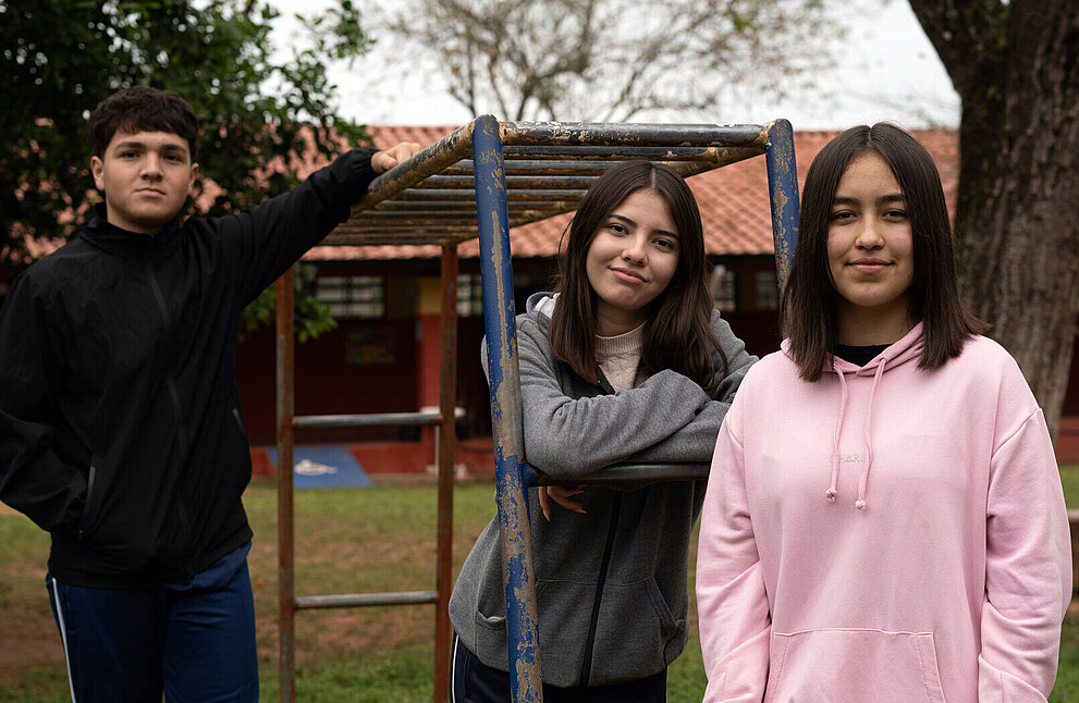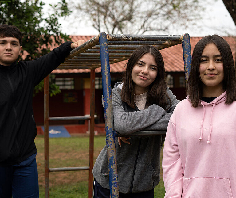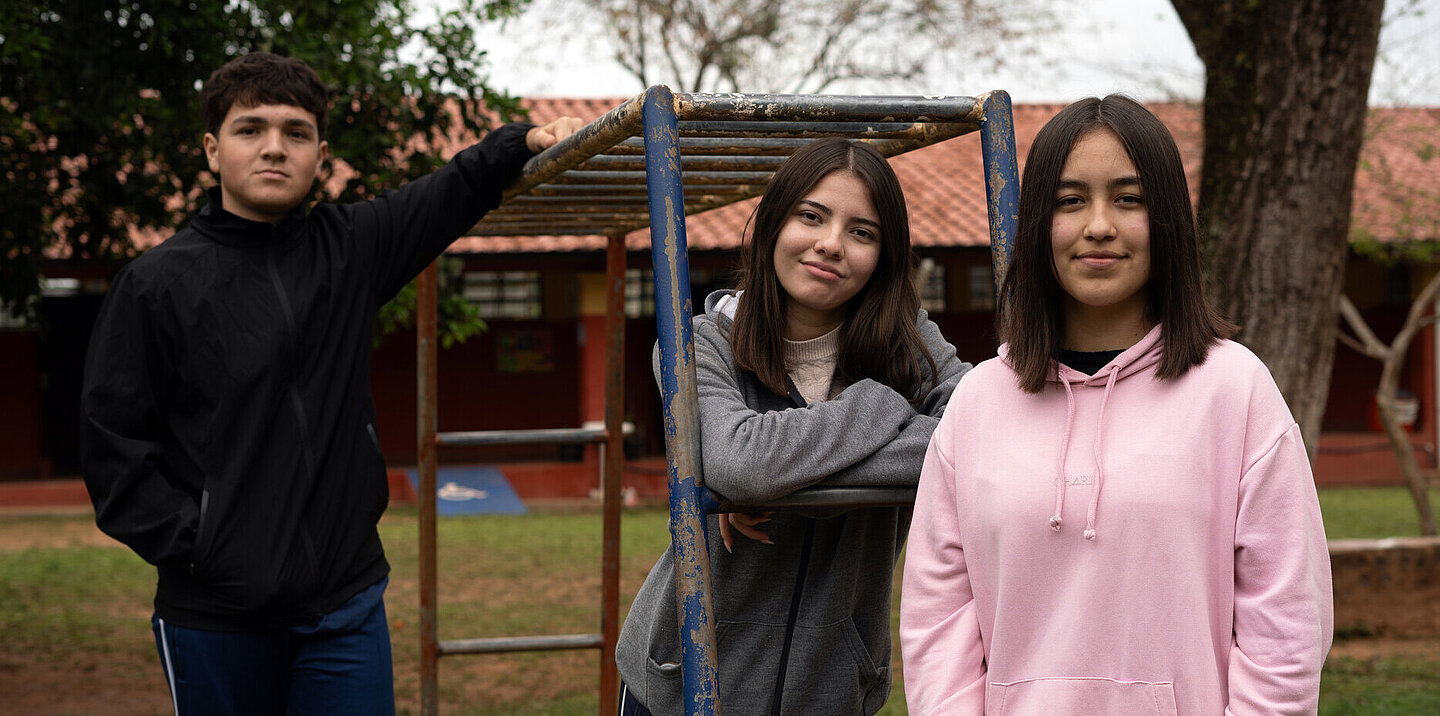 Cami, Jazmín und Ronny erinnern sich noch gut an ihre Kindheit auf dem Spielplatz ihrer Schule im paraguayischen San Pedro. Schaukel, Rutsche und Wippe waren Treffpunkt für viele Mädchen und Jungen. Doch mit den Jahren verfiel der Platz – und wurde zunehmend gefährlich.