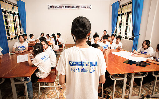Mit Unterstützung von Plan International führt Thao jetzt einen Workshop für die 29 Mitglieder des „Champions of Change“-Clubs durch. Er dient zur Vorbereitung für einen Vortrag über den sicheren Umgang mit dem Internet, den das Mädchen vor der gesamten Schule halten will. „Die Plan-Teams unterstützen unsere Initiativen zur digitalen Sicherheit, etwa für weitere Info-Veranstaltungen an unserer Schule“, sagt Thao.