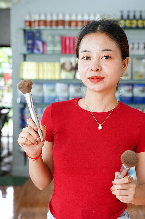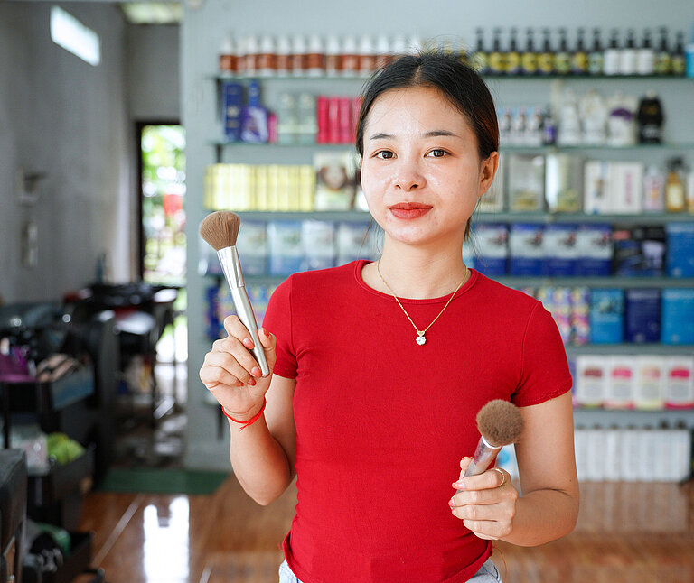 Eine Fortbildung in diesen Bereichen trug dazu bei, Linas kleines Unternehmen regelrecht zu einer anerkannten lokalen Marke auszubauen. Dank besserer Planung versteht sie nun saisonale Trends und weiß, wie sie ihre Dienstleistungen und Preise anpassen kann. Durch verbesserte Werbekompetenz kann sie als Ladeninhaberin zudem Kundinnen weit über ihr Dorf hinaus erreichen: „Ich habe gelernt, wie man einen Geschäftsplan erstellt, die Einnahmen und Ausgaben im Blick behält, neue Techniken erlernt und Werbung auf Social Media macht.“