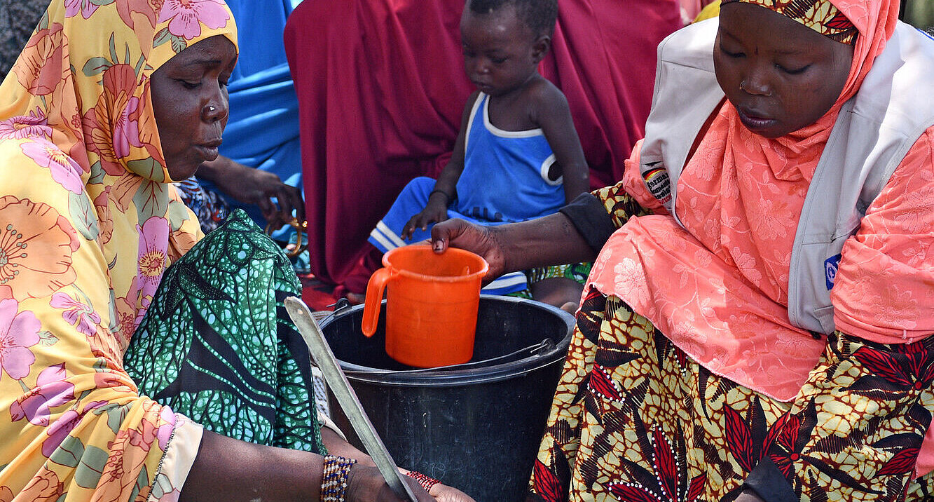 Aissa, eine der Mentorinnen, erklärt zunächst die Bedeutung von Händewaschen vor dem Essen. Dann zeigt sie Schritt für Schritt, wie aus einfachen Lebensmitteln eine nährstoffreiche Mahlzeit entsteht. Die Frauen hören aufmerksam zu, machen sich Notizen und tauschen sich über ihre eigenen Erfahrungen aus.
