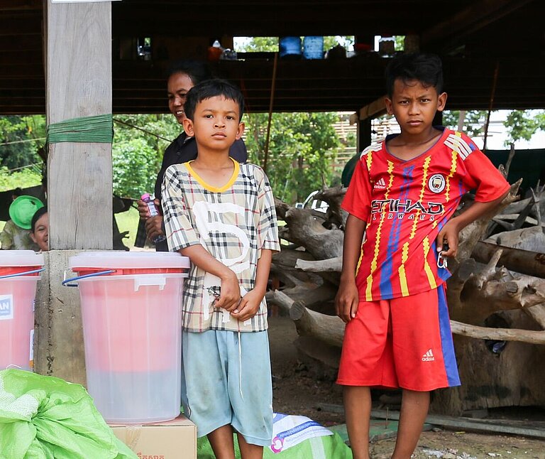 Plan International hat deshalb fast 6.000 Hygiene-Sets verteilt, 60 Latrinen gebaut und Handwaschstationen eingerichtet. Hinzu kommen 20 Wasserfilter mit je 25 Litern Fassungsvermögen sowie große Stahltanks für die Wasserversorgung. „Hygiene-Sets sind in einer Situation wie dieser nicht nur praktische Hilfsmittel, sondern entscheidend für Gesundheit und Sicherheit“, sagt eine Projektkoordinatorin von Plan International in Siem Reap.