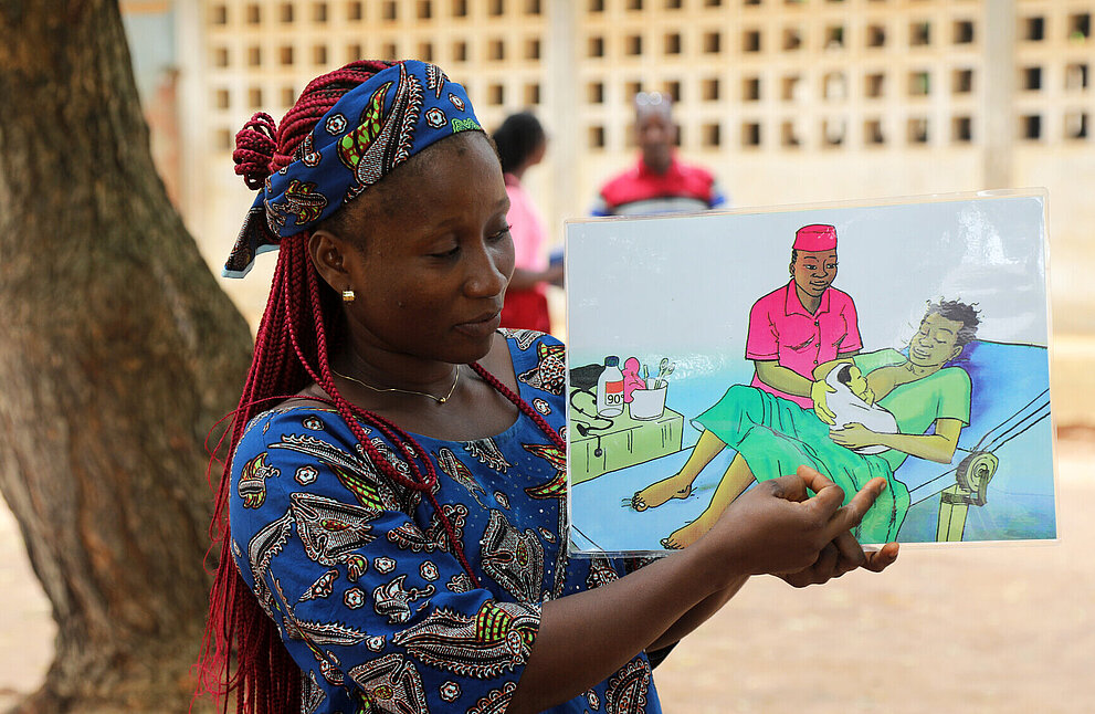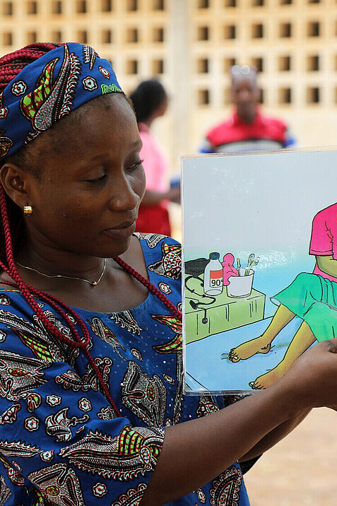 Genau hier versucht Sonia mit ihrer Arbeit anzusetzen. Ihre Aufgabe ist es, Mütter in ihrer ländlichen Gemeinde dafür zu sensibilisieren, wie wichtig es ist, auf ihre Gesundheit und die ihrer Kinder zu achten. Leichter gesagt als getan. Als sie anfing zu arbeiten, weigerten sich viele Familien, Sonias Unterstützung anzunehmen. Ihre Hausbesuche wurden abgewiesen – vielleicht aus Berührungsängsten oder Misstrauen. Nur vier von zehn schwangeren Frauen nahmen die prä- und postnatalen Beratungen in Anspruch. Dabei will die Togolesin nichts lieber als helfen – daran gehindert zu werden, fordert ihr viel ab. „Am Anfang war es eine Herausforderung, das Vertrauen der Eltern zu gewinnen“, sagt sie. Doch sie ist entschlossen, ihr Leben der Gesundheit und dem Wohl ihrer Gemeinde zu widmen.