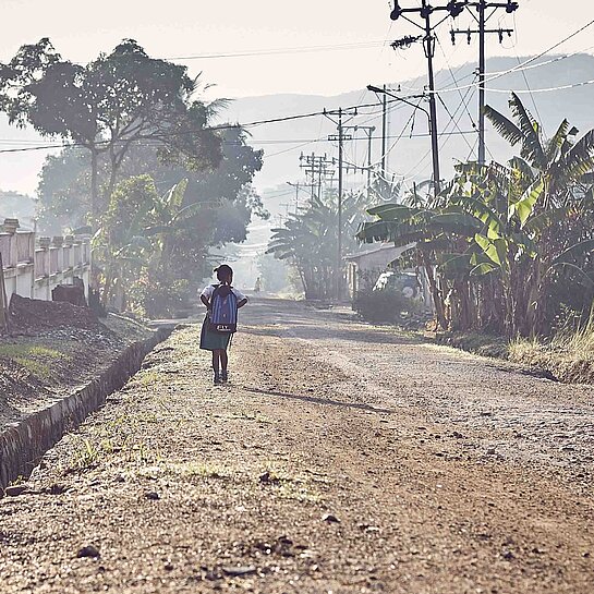 Die erste Anlaufstation ist eine Schule für die Jüngsten. Kinder im Alter von drei bis sechs Jahren warten im Klassenraum bereits auf unseren Besuch. Zunächst werden wir ins Büro der Schulleiterin gebeten, die uns in einem farbenfrohen Kleid empfängt. Mir fällt auf, dass die Menschen hier, trotz ihrer Armut großen Wert auf ihr Äußeres legen. Die Kinder im Klassenraum sitzen erwartungsvoll an ihren Tischen. Zur Begrüßung singen und klatschen sie. Ich mache mit, so gut wie möglich. Dann gehen wir raus, um erste Fotos aufzunehmen. Ich setzte mich zu den Kleinsten auf einen Teppich mit großen Legosteinen. Weiter geht die Fotosession mit einem Fußballspiel. Die Kinder haben ihre anfängliche Scheu verloren, spielen mit mir und freuen sich. Als wir aufbrechen, laufen die Kinder zum Zaun und winken mir zu. Auf der Weiterfahrt erfahre ich, dass Plan diese Schule aufgebaut hat - unter anderem auch von meinem Patenschaftsbeitrag.
