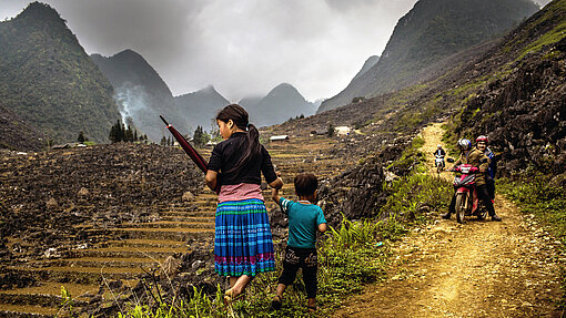 Weil das Leben in den Bergen Ha Giang-Provinz so beschwerlich ist, brechen viele Mädchen die Schule ab, um ihren Familien helfen zu können. Die Väter und älteren Geschwister verlassen ihre Familien teilweise monatelang, um woanders als Leiharbeiter zu arbeiten. Also müssen die Kinder ihren Platz einnehmen und den Haushalt erledigen.