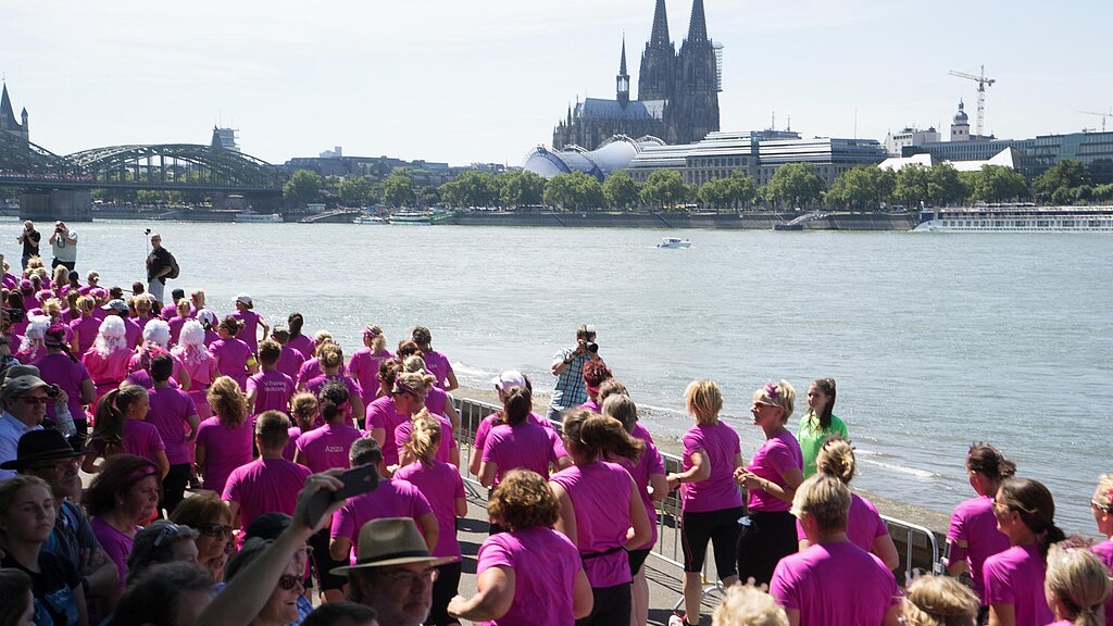 Die Stimmung in der Karnevalshochburg war mit 10.000 Teilnehmerinnen rekordverdächtig - auch in Köln schnürten „Streckenköniginnen“ ihre Turnschuhe, um auf der 5 bis 8 km langen Laufstrecke ihr Bestes zu geben. Aufgrund der sommerlichen Temperaturen ließen es sich viele der Teilnehmerinnen bereits Stunden vor dem eigentlichen Start im Women’s Village gut gehen.