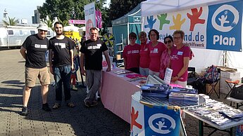 Auch dieses Jahr war Because I am a Girl in Köln mit einem Aktionsstand vertreten, der von Ehrenamtlichen der Plan-Aktionsgruppe Köln betreut wurde. Das Engagement zahlte sich aus - der charmante Aktionsstand lockte über 4.239 Teilnehmerinnen, die mit Because I am a Girl Info-Material versorgt wurden und sich über Patenschaften informieren konnten. Ein herzliches Dankeschön an die engagierten Mitarbeiterinnen und Mitarbeiter!