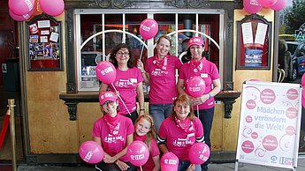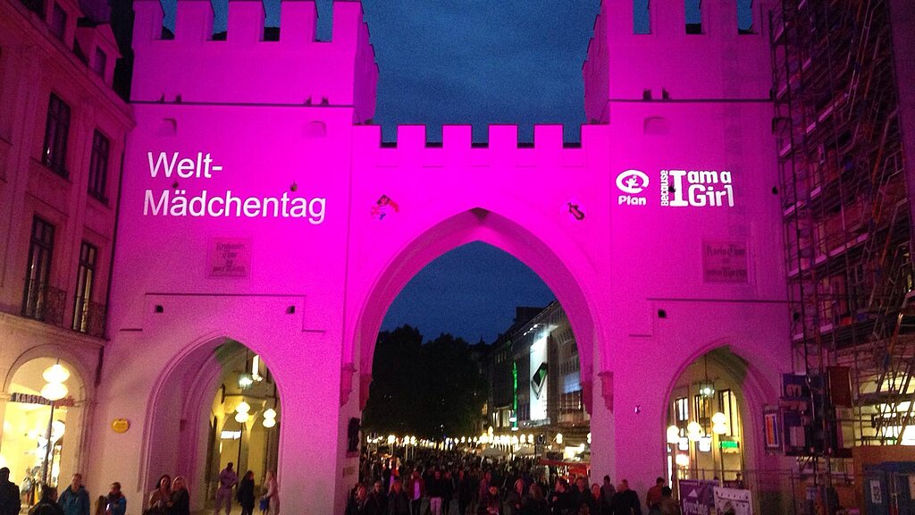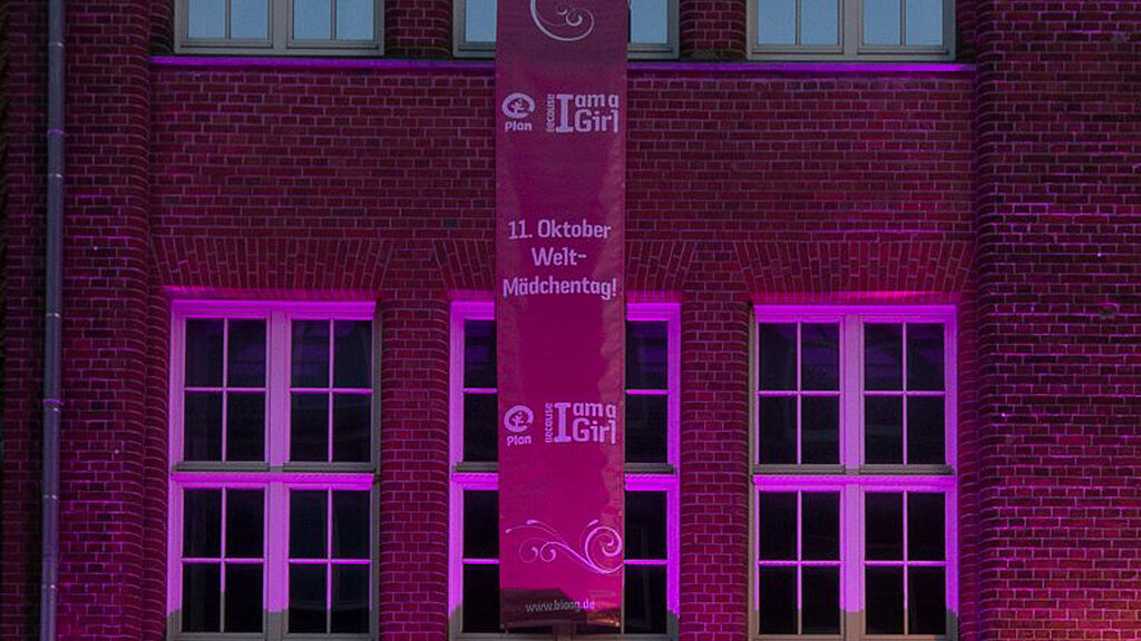 Bereits zum dritten Mal machte Plan zum 11. Oktober mit einer ganz besonderen Beleuchtungsaktion auf die Belange von Mädchen aufmerksam. Durch die Initiative von Plan und mit Hilfe der tatkräftigen Unterstützung der ehrenamtlichen Plan-Aktionsgruppen wurden in 30 deutschen Städten bekannte Gebäude und Wahrzeichen in einem kräftigen Pink erleuchtet. Dazu zählten unter anderem der Funkturm in Berlin, das Segelschiff Rickmer Rickmers und das Schauspielhaus in Hamburg, das Karlstor in München sowie das Schloss Mainau am Bodensee. Außerdem fanden in vielen Städten auch Veranstaltungen zum Welt-Mädchentag statt. Warum gerade die Farbe <link internal-link internal link in current>Pink? Sie symbolisiert Power und Lebensfreude.