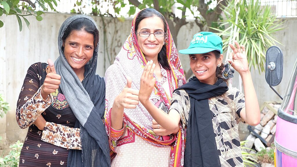 Die ausschließlich weiblichen Fahrerinnen der pinken Taxis stärken das Selbstbewusstsein aller Frauen in Pakistan und sind Vorbilder für die Frauen und Mädchen ihrer Gemeinden. Sie arbeiten in einem bis dahin ausschließlich von Männern dominierten Bereich und <link https: www.plan.de kampagnen-und-aktionen because-i-am-a-girl-fuer-die-rechte-von-maedchen aktuelles detail artikel die-schneiderin-von-dakar.html external-link-new-window>verdienen sich ihren Lebensunterhalt selbst. Neben Bildung ist die Möglichkeit, ein eigenes Einkommen zu erwirtschaften, einer der wichtigsten Faktoren für Frauen, um ihre Rechte wahrzunehmen und ein selbstbestimmtes Leben zu führen. Die Fahrerin Bali Rani erklärt ihre Motivation so: „Ich habe zwei Kinder und war dazu gezwungen, auf der Straße betteln zu gehen. Das Projekt von Plan International hat mir einen anständigen und respektvollen Weg gezeigt, Geld zu verdienen. Ich wurde Fahrerin einer pinken Rikscha. Nun kann ich meine Familie unterstützen und meinen Kindern eine gute Ausbildung bieten.“ Die Fahrerinnen fahren etwa 10 bis 12 Frauen und verdienen um die 300 Rupien pro Tag, was ungefähr 3 US-Dollar entspricht. Auch wenn dies noch ein geringes Einkommen darstellt: Sowohl für die Fahrerinnen als auch für die Fahrgäste bietet der Rikscha-Service ein neues Maß an Bewegungsfreiheit und Unabhängigkeit von ihren Familien.