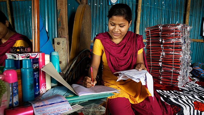 Nipa ist sich darüber im Klaren, dass ihr Leben auch anders aussehen könnte: Ohne Zugang zu Bildung, erschöpft durch lange Arbeitstage, wäre es mühsam, den Kreislauf der Armut ohne fremde Hilfe zu durchbrechen. Mit der Unterstützung von Plan konnte sich Nipa ihren Traum erfüllen und leitet jetzt ihr eigenes Familienunternehmen.