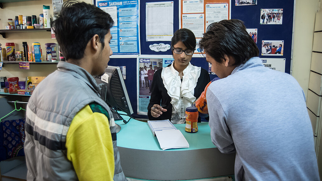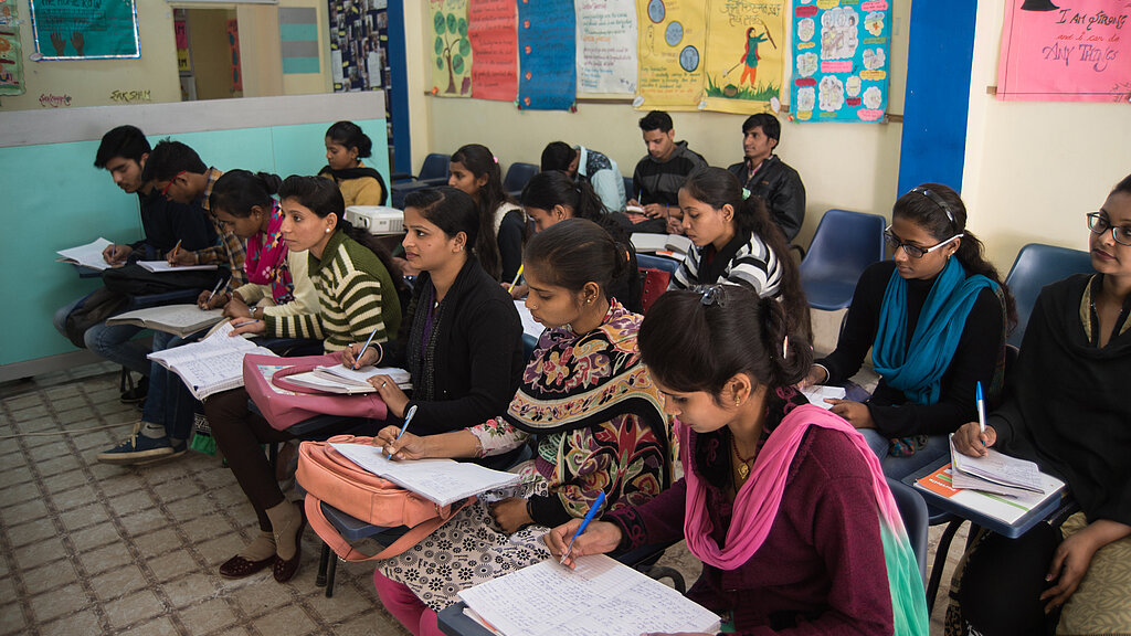 Die meisten Jugendlichen in den Städten Indiens, aus den Slums der indischen Metropole Delhi sind nicht in der Lage, berufliche Fähigkeiten zu erwerben. Berufsbildungszentren liegen oft weit entfernt von ihren Wohngegenden. Ärmere Familien sind zumeist nicht in der Lage, die Kosten für eine Ausbildung aufzubringen. So gehen von 35 Millionen jungen Frauen lediglich 3,1 Millionen einer Arbeit nach - das sind 9 Prozent. Insgesamt arbeiten nur ein Drittel so viele Frauen wie Männer. Das Saksham genannte Berufsbildungsprogramm von Plan Indien überbrückt diese Kluft und bringt berufsfördernde Maßnahmen in die benachteiligten Gemeinden, um die Jugendlichen zu unterstützen, die weder Zugang zu Bildung, noch zu Ausbildung oder einer Erwerbstätigkeit haben. Das Programm wird kostenlos angeboten und soll benachteiligten Jugendlichen die notwendigen Fähigkeiten vermitteln, um einen Job auszuüben oder sich selbständig zu machen.