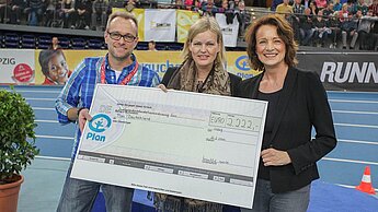 Außerdem konnte sich Plan über eine Spende in Höhe von 2.222 Euro freuen, welche durch den Verkauf der Charity-Kalender von dem Produzenten Axel Kohring erlöst wurde. Mit dem Titel „Leichtathletik 2014“ hat der Künstler eine Projektidee entwickelt, welche kreative Bildideen mit Sportlern umsetzt und gleichzeitig etwas Gutes tut. Für den Kalender standen sowohl deutsche Spitzen-, als auch Nachwuchsleichtathleten vor der Kamera. Angela Bergel, bei Plan International Deutschland für den Bereich Unternehmenskooperationen verantwortlich, hat den Scheck stellvertretend mit großer Freude entgegen genommen: „Wir sind begeistert über diese großartige Spende und das tolle Engagement. Vielen Dank an alle Beteiligten.“