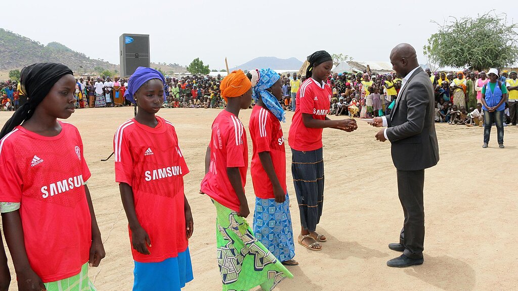 Plan International ist seit 2015 im Minawao-Flüchtlingscamp im Einsatz und unterstützt die Geflüchteten und die Menschen, die in den Dörfern nahe des Camps leben. Plan arbeitet unter anderem daran, Gewalt gegen Frauen mithilfe von Aufklärungsveranstaltungen und anderen Aktivitäten zu bekämpfen, die ein Bewusstsein für die Problematik schaffen sollen.