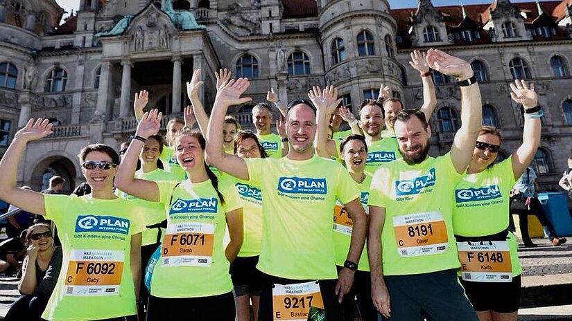Läuferinnen und Läufer machten beim Hannover Marathon auf Plans Arbeit aufmerksam (© Norbert Wilhelmi für laufen.de)