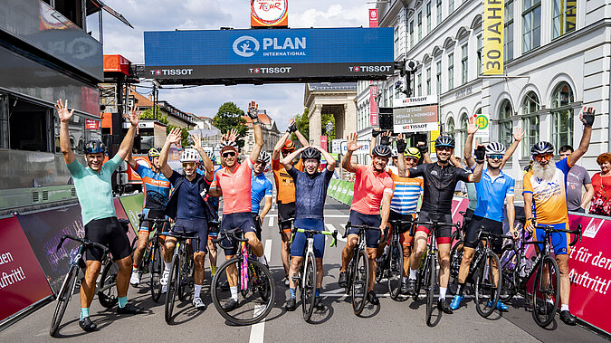 Doch bevor sich die Radtrikots angezogen und die Helme aufgesetzt wurden, galt es gemeinsam das Spendenziel zu erreichen. Die Teilnehmenden legten sich eigene Spenden-Webseiten an, um für Plans Ukraine-Nothilfe zu sammeln. Dazu kam die Unterstützung von Partnern der Deutschland Tour, die mit eigenen Spenden oder Auktionen unsere Hilfsmaßnahmen für die geflüchteten Kinder und ihre Familien förderten. Insgesamt konnten über 20.000 Euro an Spenden für unsere Ukraine-Nothilfe gesammelt werden. An dieser stolzen Summe beteiligte sich auch Marcel Kittel und versteigert eines seiner ersten Gravel-Rennräder.
