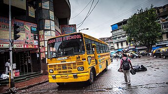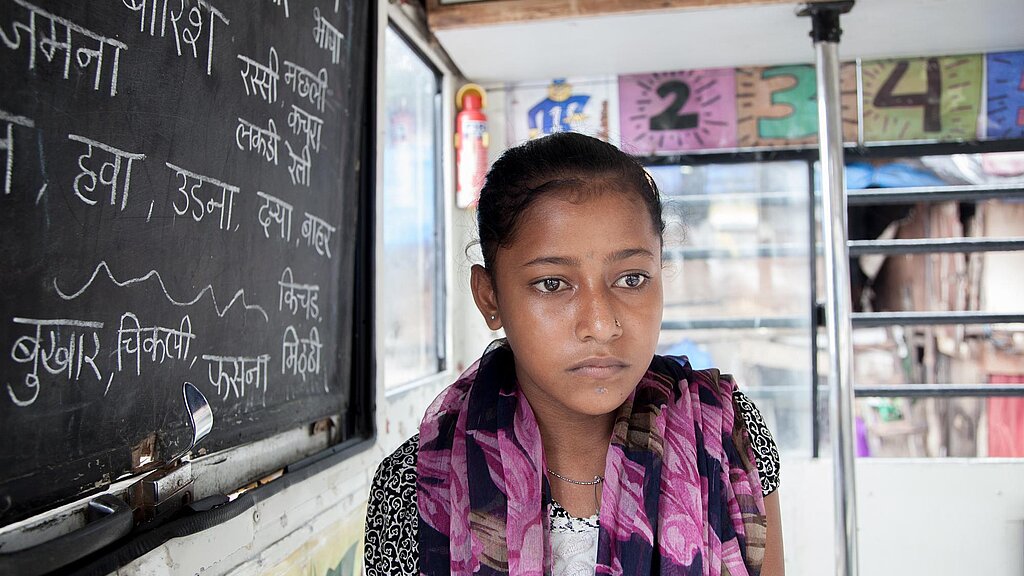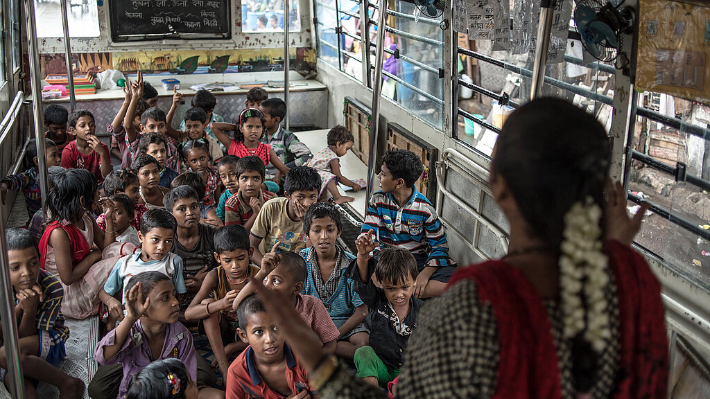 Entschlossen, allen Kindern eine <link https: www.plan.de patenschaft helfen-mit-plan.html external-link-new-window external link in new>Chance auf Bildung zu gewähren, hat Plan International in Kooperation mit der „Door Step School“ 2008 das Projekt „School on Wheels“ gegründet. Rund 3.000 Kinder in Mumbai profitieren bereits jährlich von der Schule auf Rädern.