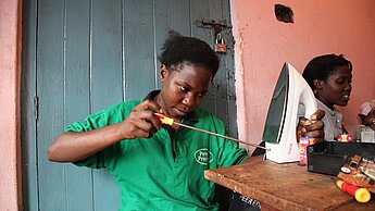 „Jetzt arbeite ich selbst für PEVUS und kläre Mädchen über ihre Rechte und reproduktive Gesundheit auf.“ Jacqueline steckt gerade mitten in ihrer Ausbildung zur Elektronikerin. „Ich habe gerade diesen Berufsweg ausgewählt, weil es kaum Mädchen gibt, die sich dafür entscheiden“, erklärt sie. „Endlich kann ich etwas lernen. Wir haben hier in den Slums gelebt und unseren Körper verkauft, aber jetzt können wir Fernseher reparieren und Geld verdienen.“