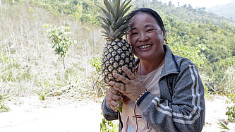 In einem Projekt von Plan International lernen Landwirt:innen in Laos, wie sie auch in der Nebensaison mit Feldfrüchten Einkommen erwirtschaften können.