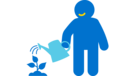 Icon einer Person, die Gießkanne in der Hand hält und eine Pflanze gießt.
