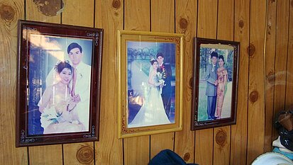 Man schaut daher einfach viel intensiver hin und versucht sich deren Alltag vorzustellen. Es gab nur zwei Räume, der Fußboden bestand aus der gleichen Erde wie vor dem Haus. Im größeren Raum befanden sich zwei der typischen Bambusplattformen. Sie dienten als Tisch, Sitzecke, Spielplatz, Lager und Bett in einem. Es gab keine weiche Auflage, Matratze oder Decke. An der Wand hingen die Hochzeitsbilder. Das gesamte Hab und Gut der fünfköpfigen Familie befand sich in ein paar Plastiktüten, mehr gab es nicht. Dahinter lag der kleinere Raum mit einer Kochstelle am Boden und einem großen leeren Topf. Die Küche sah wirklich mehr als trostlos aus. Alte Zeitungen dienten als Wandverkleidung, um die Löcher in den Holzlatten zu stopfen. Strom und Wasser gab es nicht. Wenn man so schonungslos mit der Einfachheit konfrontiert wird, in der andere Menschen leben,wird man sich einmal mehr des heimischen Überflusses bewusst. Malaen teilt sich einen Teller mit drei Geschwistern, wir haben 12 Teller zu zweit... Wie unterschiedlich unsere Welten doch sind.