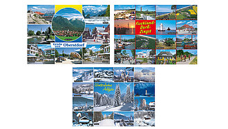 Drei Ansichtskarten im Set: mit großer Deutschland-Bilderauswahl, am Meer, in den Bergen und Landschaften im Schnee.