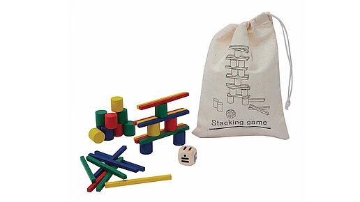 Ein unterhaltsames Geschicklichkeitsspiel, das Konzentration und Feinmotorik spielerisch trainiert. Die farbigen Stäbchen und Zylinder in den Grundfarben Gelb, Rot, Grün und Blau bringen nicht nur Freude ins Spiel, sondern regen auch die Wahrnehmung für Farben und Formen an. Mit dem stabilen Holzwürfel entstehen abwechslungsreiche Balance-Herausforderungen, bei denen Kinder Geduld, ruhige Hände und ein gutes Gespür für Gleichgewicht entwickeln. Dank der praktischen Verpackung im Baumwollbeutel bleibt das Spiel geschützt und ist leicht überallhin mitzunehmen .