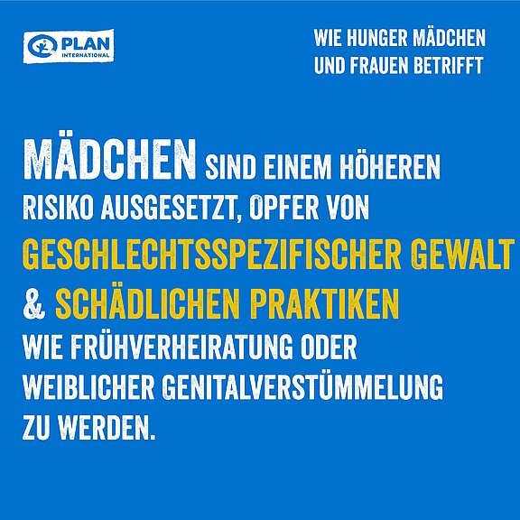 - Mädchen in Krisengebieten sind zusätzlich gefährdet: Wenn Familien hungern, steigt das Risiko für frühe Schulabbrüche, Kinderehen oder ausbeuterische Arbeit. Hunger verschärft so bestehende Ungleichheiten.