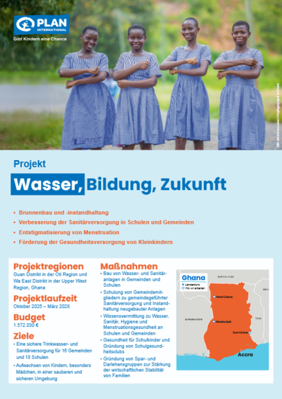 Der Zugang zu sauberem Wasser und funktionierenden Sanitäranlagen ist ein grundlegendes Menschenrecht und entscheidend für Gesundheit, Bildung und Entwicklung. Ghana hat zwar Fortschritte erzielt, doch in ländlichen Regionen fehlt vielen Menschen weiterhin der verlässliche Zugang zu Trinkwasser und Toiletten. Besonders betroffen sind Mädchen und junge Frauen, die während der Menstruation häufig nicht am Unterricht teilnehmen können, wenn keine geeigneten Einrichtungen vorhanden sind. Kleinkinder leiden am stärksten unter Krankheiten wie Cholera oder Durchfall, die schnell lebensbedrohlich werden können. In Regionen wie Oti und Upper West verschärfen fehlende Sanitäranlagen und unzureichende Wasserversorgung die Risiken erheblich, sodass Investitionen in diesen Bereich über Infrastruktur hinaus eine Frage von Zukunftschancen und Überleben sind.