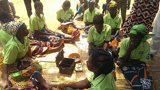 Neben den Baumaßnahmen unterstützen wir die Bildung von Spargruppen. So können die Gemeindemitglieder auch langfristig die Gebühren zu zahlen, die für die Wassernutzung und die Instandhaltung der Anlagen anfallen. Dafür statten wir jede Spargruppe mit einer Geldkasse, Sparbüchern und einem Kassenbuch aus. Aus dem gemeinsam ersparten Guthaben können die Mitglieder auch kleine Kredite erhalten, mit der sie zum Beispiel die Errichtung einer eigenen Latrine finanzieren können.